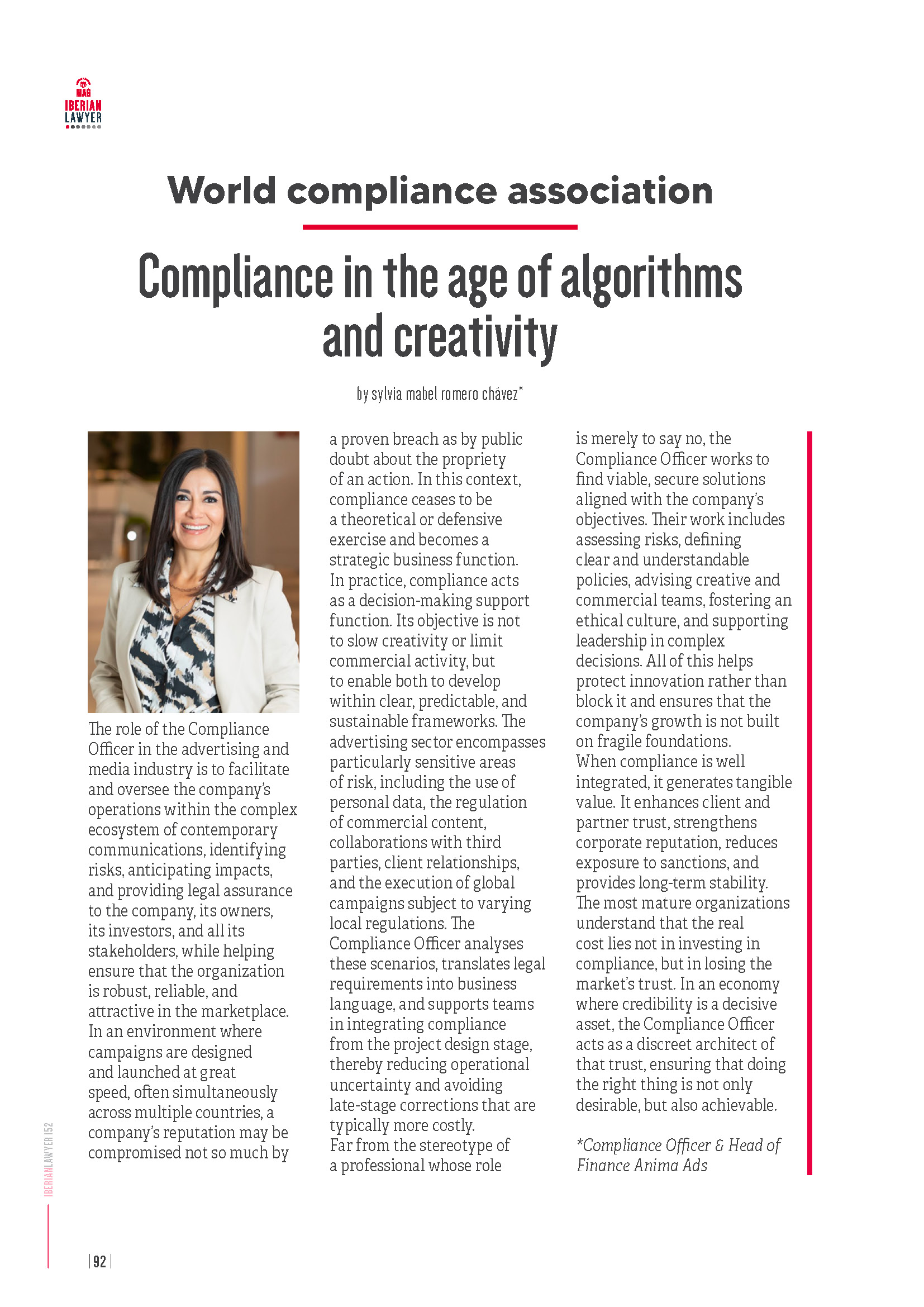 As our Head of Finance, Mabel Romero, highlights in the recent publication in Iberian Lawyer: “We are no longer talking about a purely theoretical or defensive function, but a strategic business enabler.”