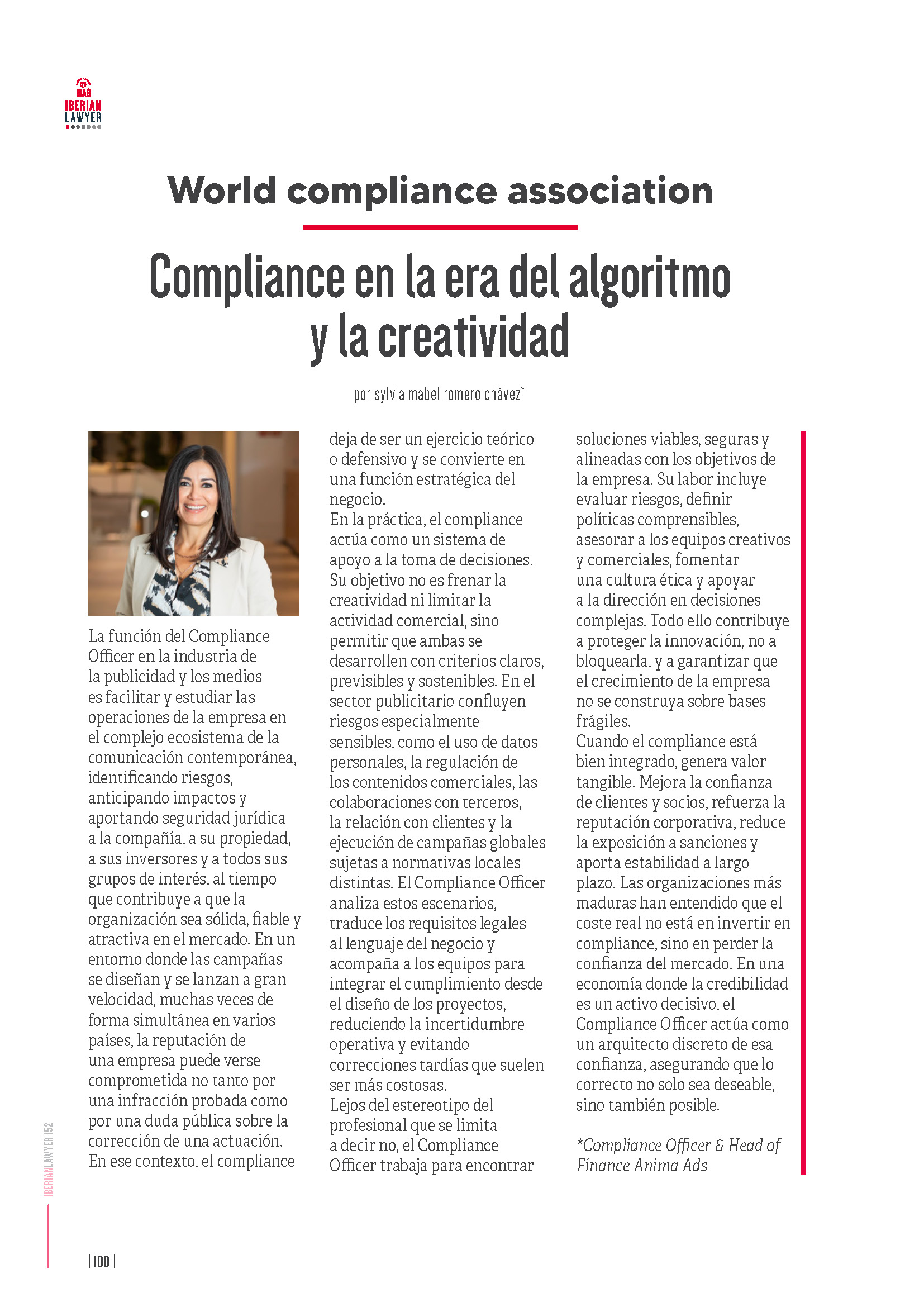 Lee el artículo completo aquí: Compliance en la era del algoritmo y la creatividad